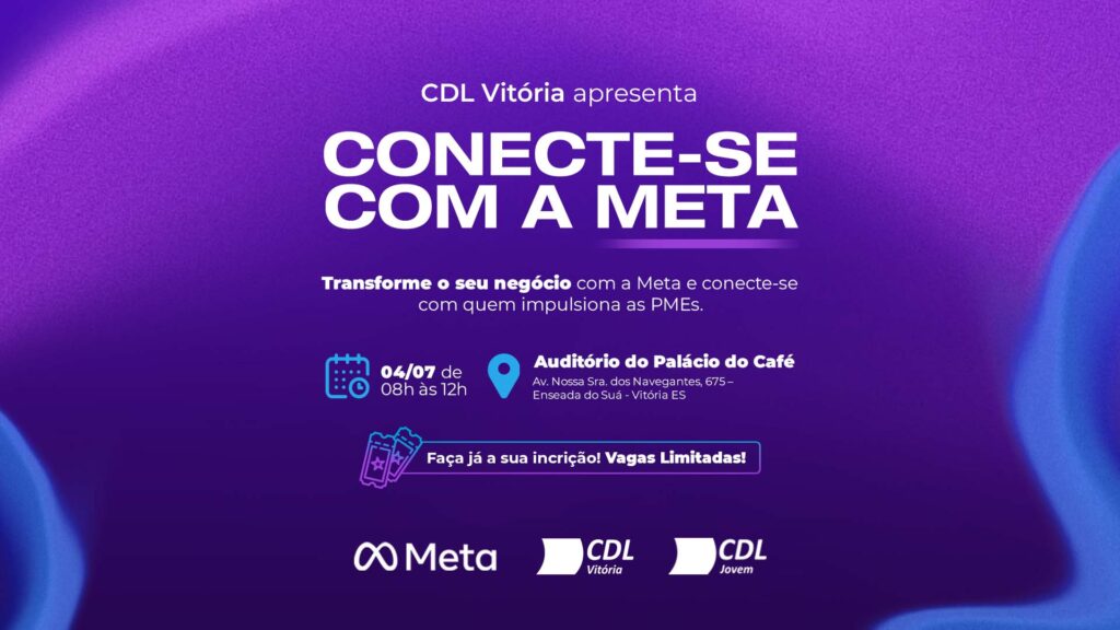 A CDL Vitória convida você para uma manhã que promete mudar a forma como você enxerga o digital. No dia 4 de julho, empreendedores, especialistas e representantes da Meta estarão juntos para um encontro inédito no Espírito Santo, com foco em resultados reais para quem vive o comércio na prática.
